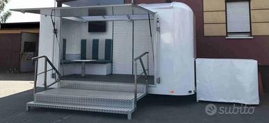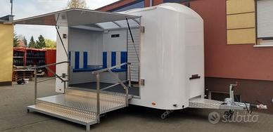 Carrelli da importazione con struttura monoblocco in polipropilene con misure da 3 mt fino a 9 mt di lunghezza utile. Carrelli con struttura monoblocco in polipropilene hanno la caratteristica di avere piu carico a parità di dimensioni con altri carrelli Carrelli omologati per attività espositive o uso negozio di vendita. Vendita anche di veicolo vuoto con omologazione Possibilità di allestimento su misura con personalizzazione per ogni veicolo. Impianti elettrico e impianto luci a Led a norma. Materiali utilizzati secondo normative HACCP Allestimenti interni a partire da euro 10500 ( escluso acquisto veicolo vuoto, costi omologazione e iva) linea moderna, piacevole e anche con soluzioni uniche come il tetto trasparente differenziano questi prodotti di alta gamma rispetto ai tradizionali carrelli. Impermeabili al 100%, a prova di decomposizione e garantito contro la delaminazione nel tempo. per qualsiasi informazione inviare msg whatsapp o email PREZZO A PARTIRE