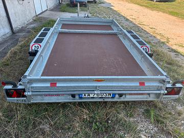 Vendo per inutilizzo rimorchio 35q usato pochissimo circa 200km Comprensivo di pedane a scomparsa Con impianto frenante Misure interne 3450x1800