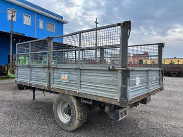 Rimorchio agricolo ad 1 asse marca Rem- ribaltabile trilaterale con pistoni idraulici- anno 2019- capacità 60 quintali- misura del cassone 4m x 2,20m- lunghezza totale compresa di timone 5,30m- altezza sponde 50 cm- altezza sovrasponde 70 cm- altezza del pianale da terra 85 cm- pianale dotato di fori per l'inserimento dei pali laterali per il trasporto di balloni- con pto per la trazione- letto sano- targa e libretto.