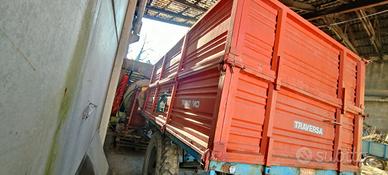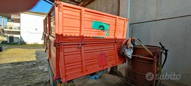 Rimorchio omologato con targa e libretto con ribaltamento trilaterale e con sponde da 60cm a giro.Fondo del pianale in ferro.Gomme su cerchioni del 10.00-20.Ribaltamento tramite una sola presa idraulica,ma su richiesta posso fornire la sua pompa originale a presa di forza.Il serbatoio e' ancora fissato al telaio.Lunghezza 3.23 e larghezza 1.92.Portata omologata 35q.li.Ottimo per cereali oppure inerti,uva,legname potendosi ribaltare anche su di un lato.
