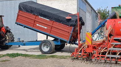 Rimorchio agricolo marca Bicchi in ottimo stato, capienza 75 q.li. Coclea idraulica, telo, sovrasponde in alluminio, gommoni michelin, frenatura idraulica.