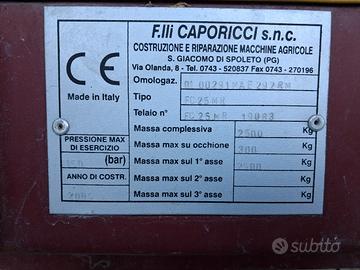 vendo rimorchio agricolo per trattore ribaltabile 1 asse, frenatura idraulica marca Caporicci omologato per la strada misure piano di carico lunghezza 240cm e larghezza 140cm
