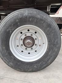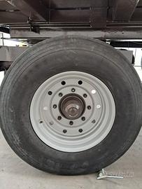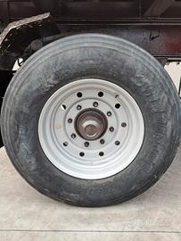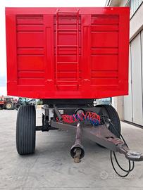 Rimorchio agricolo con cassone monoblocco ribaltabile a 2 assi Vanara VG 140 TA - Portata 14000 kg - completo di impianto frenatura pneumatica, ralla sterzante - altezza cassone 1,50mt - monoblocco ribaltabile mt 5.50 x 2.30 con portellone ad apertura idraulica e portella scarico cereali - pneumatici 385/65 R22.5 (2 posteriori Bridgestone R249 - 1 anteriore dx Dayton D400T + 1 anteriore sx Michelin XTE3). Rimorchio riverniciato.