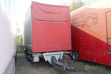 rimorchio biga casse mobili container usato pezzaioli, 2 assi con sospensioni pneumatiche, abs, timone allungabile con occhione a campana automatica, telaio attrezzato per ricovero container da 20 piedi e casse mobili da 6.15m a 7.85m, presente cassa mobile centinata con porte posteriori e copri scopri con teli laterali scorrevoli da 7.15m di carico utile, h.interna 2.80m, anno 2005, revisionata sino al 30.06.2026--CONCESSIONARIA INTERDRIVE SRL-PARMA