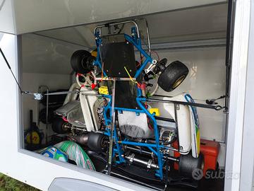 Rimorchio trasporto cose - uso proprio, immatricolato nel 2013. Utilizzato al momento per trasporto kart (ce ne stanno fino a 4 in piedi) ma adatto anche a due moto, con ulteriore spazio per attrezzatura. Condizioni assolutamente pari al nuovo, pneumatici 175/70 - 13 di tipo automobilistico. Dimensioni esterne, Lunghezza 4,035m larghezza 1,8m. Dimensioni interne 294x152x180h.