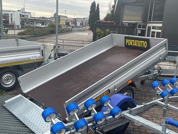 Rimorchio nuovo portatutto con freni e misure utili interne 3 x 1,70 e sponde in alluminio alte 35 cm tutte apribili e smontabili