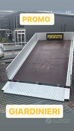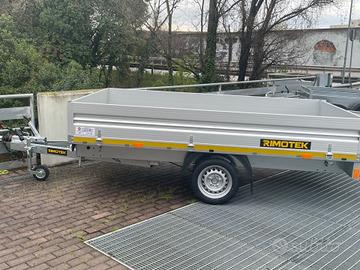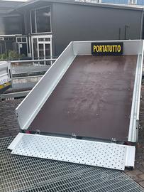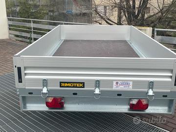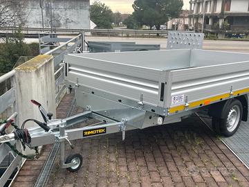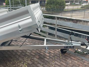 Rimorchio nuovo portatutto con freni e misure utili interne 3x1,75 mono asse con cassone basqulante e sponde alluminio tutte apribili e smontabili e ruote da 13 maggiorate e rinforzate sotto il pianale Portata complessiva 13 q e declassabile a 12q 11q 10q 9q 8q 7,5q Tara del rimorchio 3,5q Prezzo scontato e ivato 3650 Pronta consegna presso la ns sede