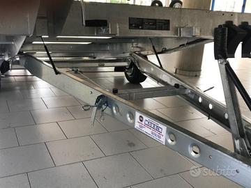 Rimorchio nuovo porta auto 2 assi con misure 3,60x2,05 con freni e ruote sotto il pianale da 10 rinforzate e maggiorate e 4 stagioni