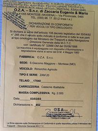 Per inutilizzo vendo rimorchio come in foto, misure interne del cassone 140x220x35.
