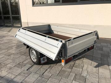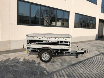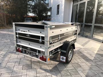 Modello : STONE X Si vende rimorchio mono asse trasporto cose Misure utili 200 x 120 x 70 cm Doppie sponde tutte amovibili, si trasforma in pianale Massa complessiva 750 / 900 kg a scelta Cerchi a 5 fori Accessori disponibili - telo piatto di copertura - barre per telo piatto - supporto ruota - ruota di scorta Disponibili 2 pezzi Per maggiori informazioni contattare in orari d'ufficio Action srl Tel Visibile nella nostra sede in provincia di Modena