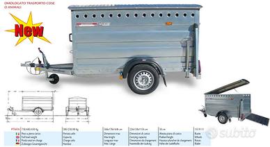 RIMORCHIO NUOVO , PESO COMPLESSIVO 750 KG , PORTATA 380 KG , CON RAMPA DI CARICO POSTERIORE , COPERCHIO SOLLEVABILE , OMOLOGATO PER TRASPORTO COSE E ANIMALI PREZZO IVA E MESSA IN STRADA ESCLUSI