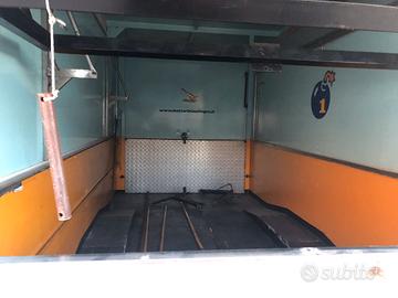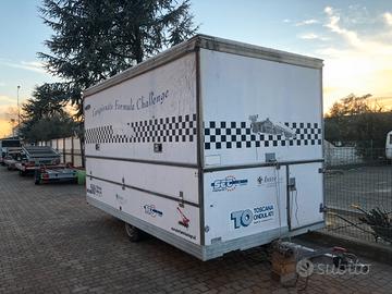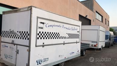 Si vende rimorchio usato, adibito al trasporto di auto formula, aperture in tutti i lati, rampa posteriore di carico..