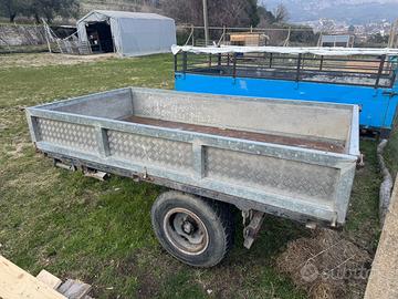 Rimorchio Galvagni 28 qli asse motrice, ribaltabile trilaterale , freni , ruotino, impianto elettrico per la circolazione stradale, prolunghe posteriori, sponde in alluminio. Dimensioni cassone 2,80 mt. X 1,50 x 0,35, sopra sponde da 0,25 ottimo stato