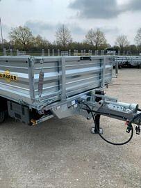 Vendiamo rimorchio Humbaur serie 10000 HTK 145024 Massa a pieno carico 14400 kg con 10900 kg utili Rimorchio ribaltabile trilaterale con pianale in acciaio Dimensioni intere utili 5030 x 2420 x 500mm Contattaci per maggiori informazioni