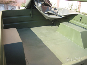Robustissimo: tara 590 kg, peso p.c. 1090kg, freno ad inerzia, aggancio tipo 'occhione NATO', timone ad altezza variabile (doppio snodo), balestre a 5 foglie. Completo di centina, telo in pvc, cassetta porta dotazioni e ruota di scorta. Tutte le sponde sono rimovibili (togliendole diventa un pianale). Fanali ed impianto elettrico militare. Ottimo da agganciare ad un IVECO VM90 ma anche Fiat Campagnola (AR76), Land Rover Defender AR90, ecc. Rispetto ai (pochi) proposti, questo è pronto all'uso su strada, completo di tutto: libretto, immatricolazione e revisione valida fino a nov.2026. Richiesta: 2500