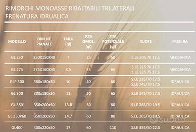 RIMORCHIO MONOASSE RIBALTABILE TRILATERALE CON FRENATURA IDRAULICA