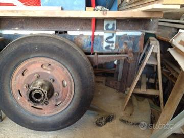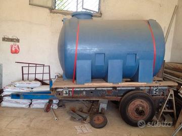 Vendo rimorchio per trasporto acqua potabile costruito da telaio OM 40 e timone con occhione di rimorchio agricolo . Pianale realizzato con profili ad H e tavoloni. La vasca da 3000 litri è in ottime condizioni, senza perdite e provvista degli attacchi per carico e scarico acqua. Le gomme sono nuove e il rimorchio è stato sempre tenuto sui cavalletti. Misure pianale 250 X 140 cm, lunghezza timone 115 cm.