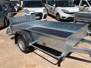 Rimorchio Carrello a pianale con sponde e rampa di salita doppio uso trasporto veicoli e cosa marca Cresci Rimorchi modello PT6C 450/600/750 Kg. Rimorchio nuovo disponibile nelle versioni 450/600/750 kg pieno carico.