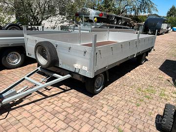 Rimorchio con ralla due assi Misure utili 400 x 200 + struttura centina senza il telo. Trasporto cose Struttura da 2700 kg declassata a 2000 kg Revisione ok Pronto all uso Per maggiori informazioni o per fissare appuntamento per visione contattare in orari d'ufficio Action srl Tel Visibile nella nostra sede in provincia di Modena