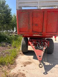 Rimorchio agricolo ribaltabile posteriore, portata utile 140 quintali. Cassone in ferro rinforzato con sponde robuste, ideale per il carico di tronchi di legno Dotato di frenata idraulica Ottimo per trasporto legname o matreiale agricolo in genere.