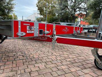 Nuovo Modello FAST 2.7 Misure utili di carico 400 x 200 cm Massa complessiva 2700 kg Portata utile 2070 kg Possibilità di omologazione con pesi diversi Basculante ammortizzato Possibilità di pompa idraulica Angolo inclinazione 10 gradi Ideale per auto sportive Per maggiori informazioni o per fissare appuntamento per visione contattare in orari d'ufficio Action srl Tel Visibile presso la nostra sede in provincia di Modena