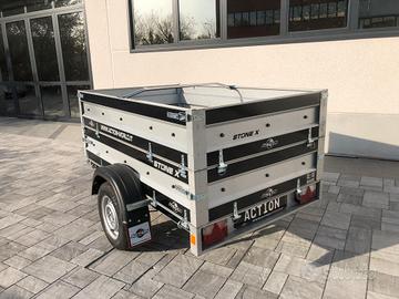 Modello : STONE X Si vende rimorchio mono asse trasporto cose Misure utili 200 x 120 x 70 cm Doppie sponde tutte amovibili, si trasforma in pianale Massa complessiva 750 / 900 kg a scelta Cerchi a 5 fori Accessori disponibili - telo piatto di copertura - barre per telo piatto - supporto ruota - ruota di scorta Disponibili 2 pezzi Per maggiori informazioni contattare in orari d'ufficio Action srl Tel Visibile nella nostra sede in provincia di Modena