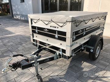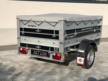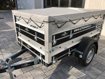 Modello : STONE X Si vende rimorchio mono asse trasporto cose Misure utili 200 x 120 x 70 cm Doppie sponde tutte amovibili, si trasforma in pianale Massa complessiva 750 / 900 kg a scelta Cerchi a 5 fori Accessori disponibili - telo piatto di copertura - barre per telo piatto - supporto ruota - ruota di scorta Disponibili 2 pezzi Per maggiori informazioni contattare in orari d'ufficio Action srl Tel Visibile nella nostra sede in provincia di Modena