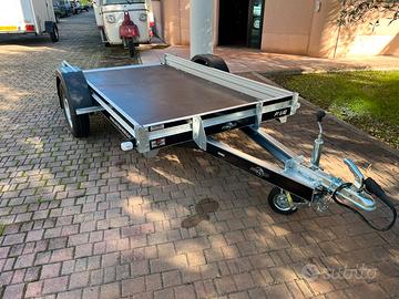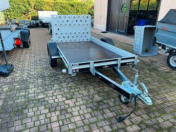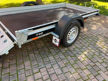 PT 2.40 misure utili di carico 240 x 130 cm con spondina di 15 cm, pianale fisso con rampa posteriore. Disponibili in pronta consegna sia la versione senza freno con omologazioni da 750 kg e 500 kg sia con freno da 750 kg a 900 kg. Per maggiori informazioni o per fissare appuntamento per visione contattare in orari d'ufficio Action srl Tel