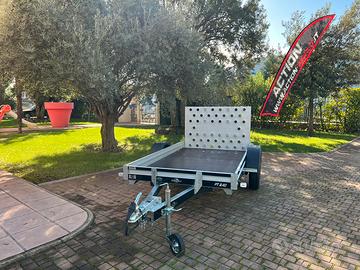 PT 2.40 misure utili di carico 240 x 130 cm con spondina di 15 cm, pianale fisso con rampa posteriore. Disponibili in pronta consegna sia la versione senza freno con omologazioni da 750 kg e 500 kg sia con freno da 750 kg a 900 kg. Per maggiori informazioni o per fissare appuntamento per visione contattare in orari d'ufficio Action srl Tel