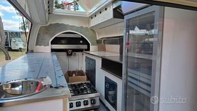 Food truck allestito con forno pizza e friggitrice.