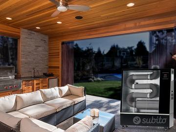 Innovativo sistema di riscaldamento per spazi chiusi ventilati (officine meccaniche, aree commerciali, industriali, agricole, magazzini, palestre) e all'aperto come in serre, terrazze, cantieri edili...