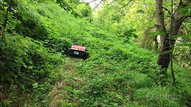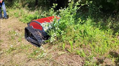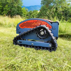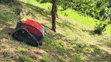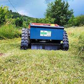 Robot TrinciaSarmenti Tagliaerba Cingolato GIOR 550 Hybrid - Controllato con RadioComando sino a 200 mt di Distanza - Motore Zanetti Ibrido : Elettrico 600 W per Avanzamento & Motore Benzina Zanetti 250cc per Movimento Lame Trincia - Taglio anche in Retromarcia - Larghezza Taglio cm 53 - Regolazione Elettronica da RadioComando Altezza Taglio da cm 3 a cm 11 - Piatto Taglio a 4 Lame Flottanti a Doppia Affilatura - Autonomia Taglio 8 Ore - Pendenza Massima Superabile 40% - Cingoli in Grado di Affrontare qualsiasi Terreno, con Capacità di Arrampicata e per Eseguire Interventi di Sfalciatura importanti, Rimozione Erba Alta e Consistente, Pulizia nel Sottobosco anche in situazioni di Forte Pendenza - Dotato di Fari a LED - Peso Kg 126 - Larghezza Esterna & Lunghezza cm 90 - Altezza cm 60 - Prezzo in Offerta - Richiedi Tranquillamente il Tuo Preventivo - Possibilità Finanziamento Intero Importo Fino a 50.000 Euro in Tutta Italia con Durata Massima 120 Mesi e Delibera in Giornata (Interamente Online) - Super Offertissima in Pronta Consegna -