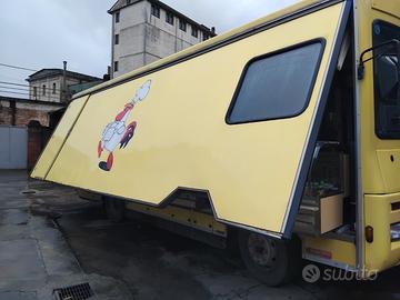 Autonegozio allestito con girarrosto, forno a gas, friggitrice, celle frigo, impianto gas in regola, banco frigo e vetrina calda. La revisione ed il tagliando appena eseguiti.