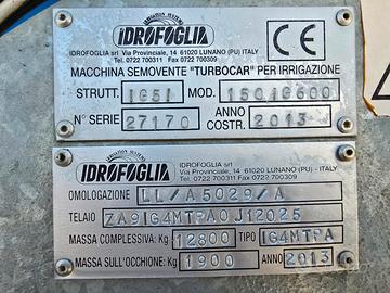 Rotolone irrigazione marca IDROFOGLIA, ore 2700 originali, misure150x 600, con libretto stradale omologato, macchina con motore NEFF 6 cilindri da 175 cavalli. Pronto all'uso.