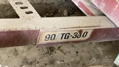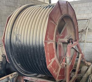 Rotolone irrigatore Irrimec mod 90 tg 350, completo di carrello. Polmone richiamo carrello non funzionante. Qualche perdita d'acqua dall'albero centrale. Ricoverato sempre al coperto, anche da quando non è più stato utilizzato.