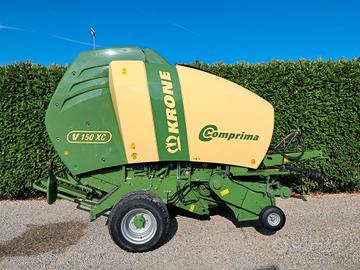 Rotopressa usata Krone Comprima V 150 XC, anno 2017. Camera variabile: regolazione diametro balle da 1.00 mt a 1.50 mt. Macchina completa di gruppo di taglio a 17 coltelli, larghezza pick-up 2.15 mt, legatore a rete, lubrificazione automatica delle catene, punti di ingrassaggio centrali, espulsore balla, pneumatici misura 500/50-17, regolazione elettrica densità pressione, cardano, kit luci e tabelle d'ingombro. Macchina in ottime condizioni. Occasione.
