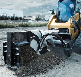 ESCAVATRICI A RUOTA AUTOLIVELLANTI per scavi a sezione predefinita. Senza settori, regolazione della profondità idraulica; - traslatore laterale idraulico con attacchi di tipo universale; - attacco "ISO 24410". Per skid steer loader a 5 linee idrauliche, il prezzo si intende per la fornitura base. La nostra linea comprende per escavatore benna, pinza, pedane e rampe da carico, trincia, martello demolitore, trivella idraulica, cingoli, fresa, ruota simex, demolitrice, frantumatrice, forche, fresa ceppi, battipalo, miscelatrice, spazzatrice, cesoia e selezionatrice