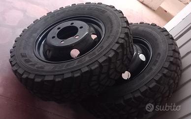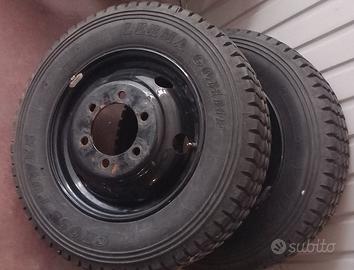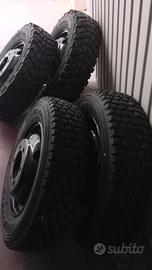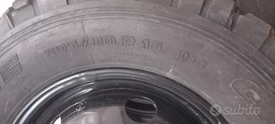 vendo 4 ruote complete da fuori strada con cerchi di Iveco Daily e/o compatibili marca/misure: .posteriori 205 / 80R 16 Green Tyre PS-Extreme ecologico .anteriori 195 / 75 R 16 Cross Power -Lerma Gomme 4x4 Le ruote son complete di cerchi di colore nero di iveco daily o compatibili . Sono usate poco, in buono stato, come da foto