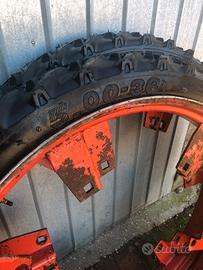 Gomme misura 5.00 r36, pneumatici nuovi, camere d aria nuove, sono alte 113 centimetri e larghe 13 centimetri, cerchio a 6 raggi con interforo di 61 centimetri, per trattori da 10 cavalli a 45 cavalli. Non spedisco, solo ritiro a domicilio