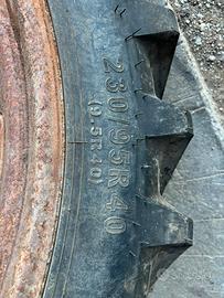 Vendo coppia ruote strette con cerchi flangia Fiat, pneumatici misura 230/95R40 (9.5/R40) in perfette condizioni pari al nuovo.