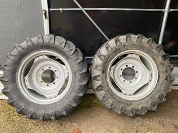 Gomme complete con cerchio per trattori deutz erano montate su un agrotron 105 misura 440-65/28 cerchi come nuovi gomme funzionanti ma vecchie e con qualche crepa misure foro centrale 220 mm 8 fori da 25 mm e interasse 105 mm