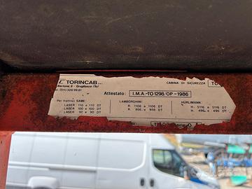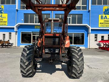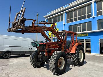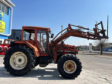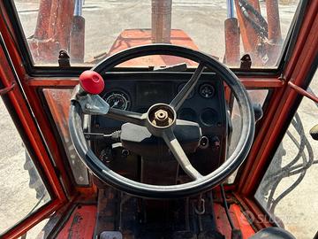 Motore: Same 5 cilindri Cilindrata: 5.195 Cavalli: 100 Anno: 1990 Ore: 7037 Cambio: meccanico Trazione: 4 ruote motrici Tara: 42 quintali Traino: 60 quintali Velocità: 35 km/h Cabina: Torincab originale e omologata con aria calda/fredda Caricatore: Bonatti con forche da balloni Gomme: ant. 420/85R24 al 50% e post. 460/85R34 al 50% Condizioni generali: buone, frizione e motore rifatti nuovi, tutto funzionante Staccabatterie La Società BA.GI.SRL da' la possibilità di finanziare tutti i suoi mezzi
