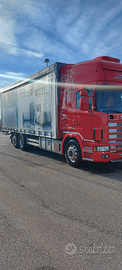 Scania 124-420, immatricolato2002, Euro 3 . Tachigrafo a disco. Km 1.050.000. Lunghezza 8.20 con pedana retrattile. Aggancio biga