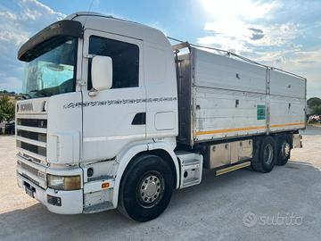 Scania 144 530 anno 2000, terzo asse intelligente,catalizzatore euro 5, retarder, clima da notte, allestimento con ribaltabilebilaterale lunghezza mt. 6,70 altezza sponde cm. 170, ottimo stato