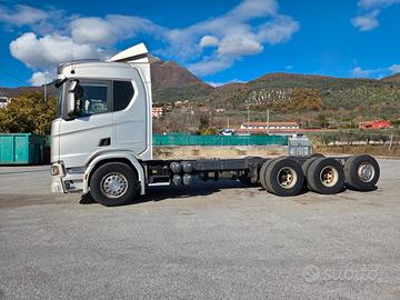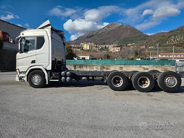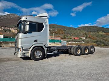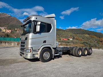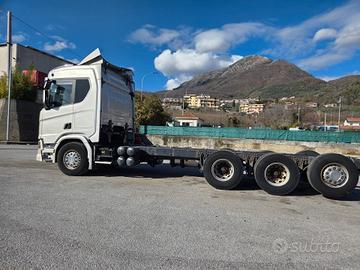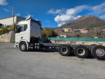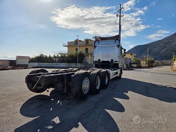 DESCRIZIONE - Autocarro in ottime condizioni generali, a telaio (possibilità di allestimento con pianale con rampe di carico nuovo), 4 assi, 8x4*4 tridem, cambio automatico, Euro 6, sospensioni full pneumatiche, retarder, clima