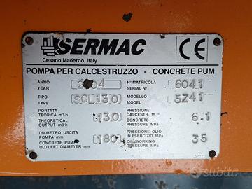 SCANIA P 114 380 anno 2004, km 282722, EURO3, con pompa SERMA 5Z42, braccio da 42 metri, tubo da 125 mm, gruppo pompante scl130 da 130 mc/h