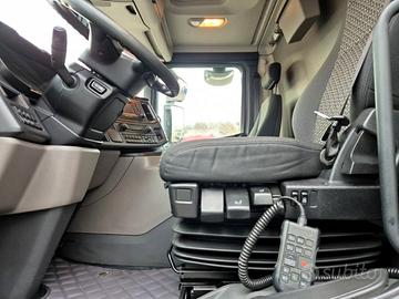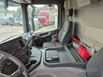 EURO 6 - Cassa scarrabile a ginocchiera con centina registrabile, porte posteriori m 10,00x2,46 misure interne - Cambio automatico - Cabina corta 2 posti - Clima - Sospensioni pneumatiche integrali - Peso complessivo Q.li 180,00 - Portata utile Q.li 99,60.