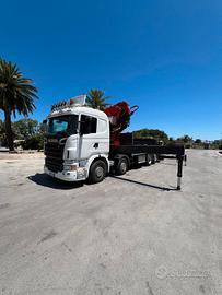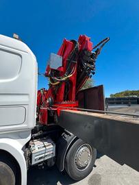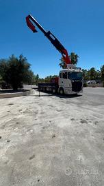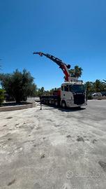 Scania R124 8X2 709.000 km, del 1999, cambio manuale, interni in stoffa , completo di GRU FASSI 900 XP + jib, cassone fisso ed estensibile, radio comando GRU, altezza massima 28 mt, stabilizzatori anteriori e posteriori, il veicolo è in perfette condizioni d'uso.