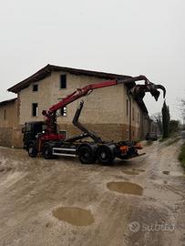 Vendo autocarro 4 assi Scania 124 420 cv anno 2001, cambio manuale, retarder, ultimo asse sterzante intelligente e sollevabile, revisionato, dotato di impianto scarrabile Multilift 30 ton, gru caricatrice JONSERED 1300 retrocabina, polipo 6 pale con girevole, 2 piedini stabilizzatori completamente idraulici, rullo posteriore, campana per agganciamento rimorchi e impianto idraulico ribaltamento rimorchi. Mezzo in buone condizioni generali, pronto al lavoro. Per maggiori informazioni solo contatto telefonico al Prezzo 30.000+iva22%
