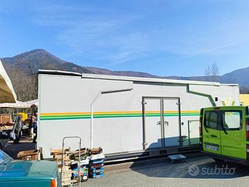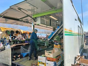 Scarrabile Minonzio con traslazione laterale apertura ai tre lati, prolunghe alle ante, impianti idraulici completi, pedana con guide scendenti per banco, banco scorrevole idraulico tutto fuori, prolunghe al banco con testa e coda, Espositore sotto tetto, Espositore alla parete scendente idraulico, vani per impianti e servizi, porta a due battenti fiancata sinistra per carico merce. Pannelli scorrevoli sulla fiancata sinistra per copertura alle due testate, pedane scendenti anteriori e posteriori a filo pavimento, arredamento completo, impianto elettrico, batterie potenziate, carica batteria, veicolo e negozio perfettamente in ordine.